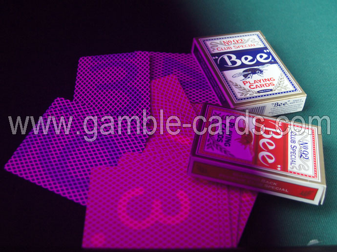 Bee Carti de joc cu Markeri luminescente sunt speciale concepute pentru un spectacol minunat ! Carduri de Albine au de obicei marginea din golf , astfel Incat Partea din fiecare carte este Revelat Numai în parte în mod clar vizibile . Cu toate acestea , reversul cardului standaard de diamant foarte obişnuit şi profil scăzut în comparaţie cu alte modele din golf " Jos - de tratament " şi gezicht alte forme de turnuri de Maná .